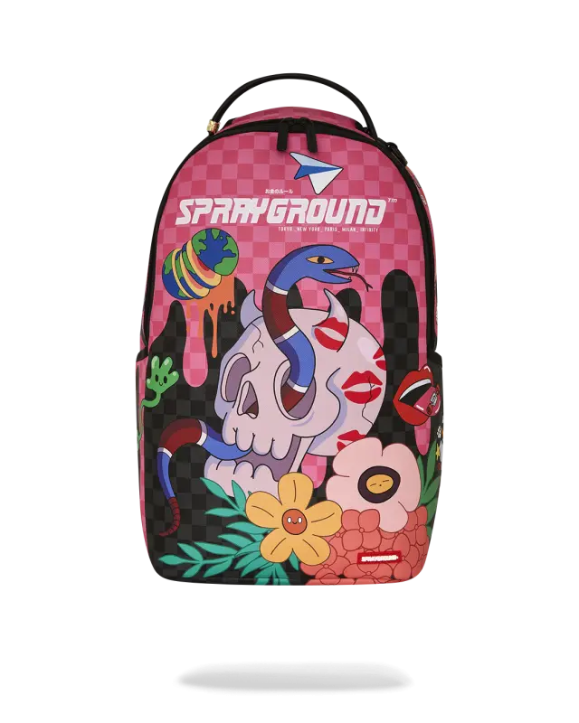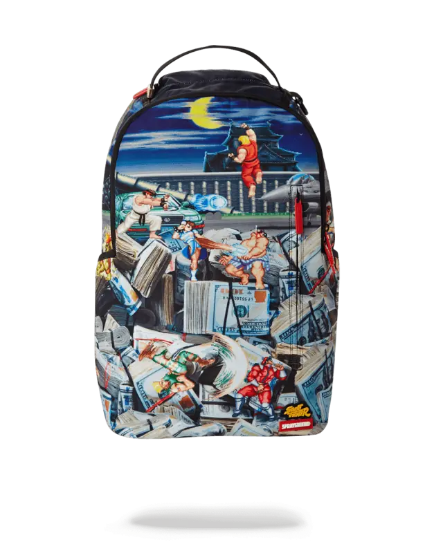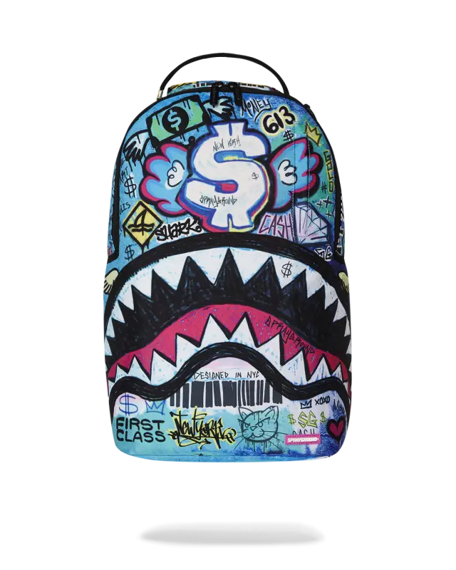 Dimensions: 8″ x 7.5″ x 13″ • Metal zipper pocket• Back Zippers •Zippered sneaker pocket • gold zippers • Adjustable Straps for custom sizing •Metal Zippers with Metal Hardware • bag of Sprayground money