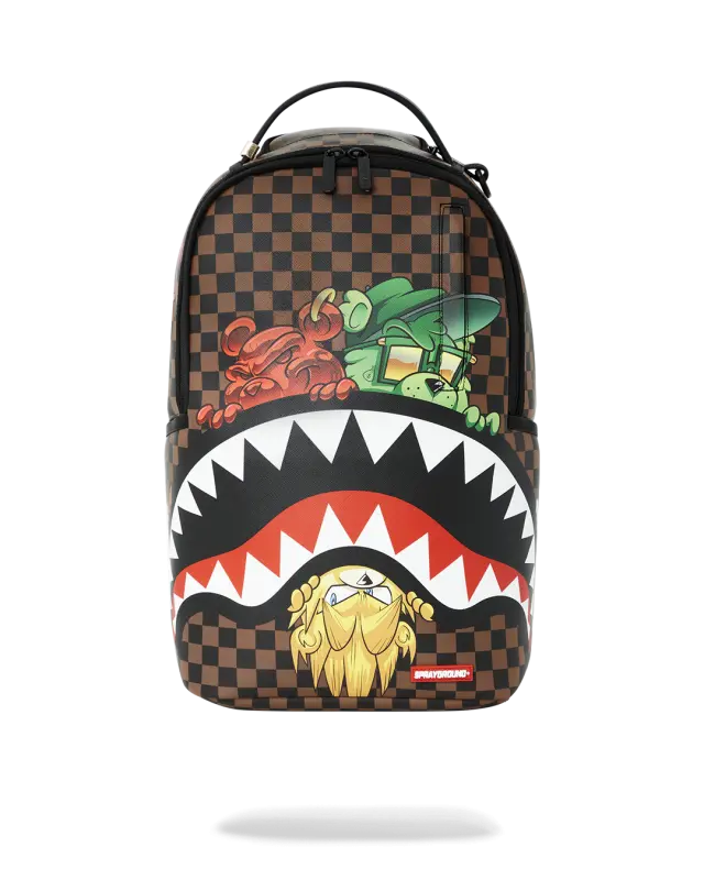 Dimensions: 18″ x 6″ x 11.5″ • Front zipper pocket • Side pockets • Zippered Stash pocket • Separate velour sunglass compartment • Ergonomic mesh back padding • Adjustable Straps for custom sizing • Gold zippers with metal hardware • Metal “Sprayground Authentic” badge • Slide through back sleeve connects to carry-on luggage to free your hands