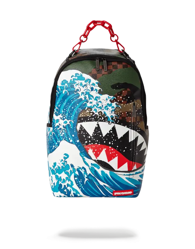Dimensions: 18″ x 6″ x 11.5″ • Front zipper pocket • Side pockets • Zippered Stash pocket • Separate velour sunglass compartment • Ergonomic mesh back padding • Adjustable Straps for custom sizing • Red zippers with metal hardware • Metal “Sprayground Authentic” badge • Slide through back sleeve connects to carry-on luggage to free your hands