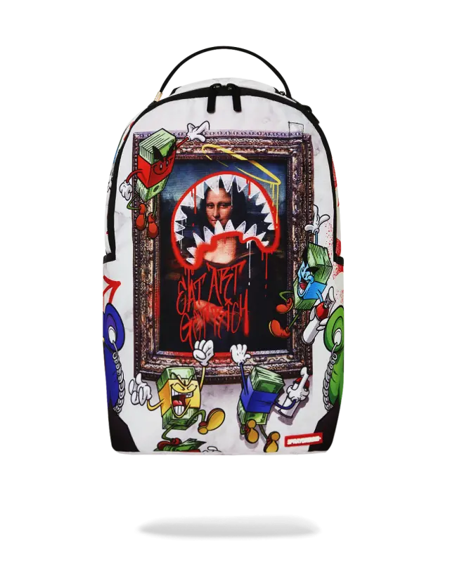 Dimensions: 18″ x 6″ x 11.5″ • Front zipper pocket • Side pockets • Zippered Stash pocket • Separate velour sunglass compartment • Ergonomic mesh back padding • Adjustable Straps for custom sizing • Gold zippers with metal hardware • Metal “Sprayground Authentic” badge • Slide through back sleeve connects to carry-on luggage to free your hands