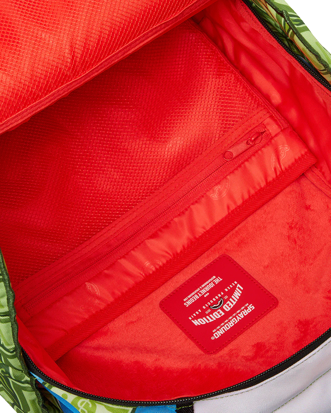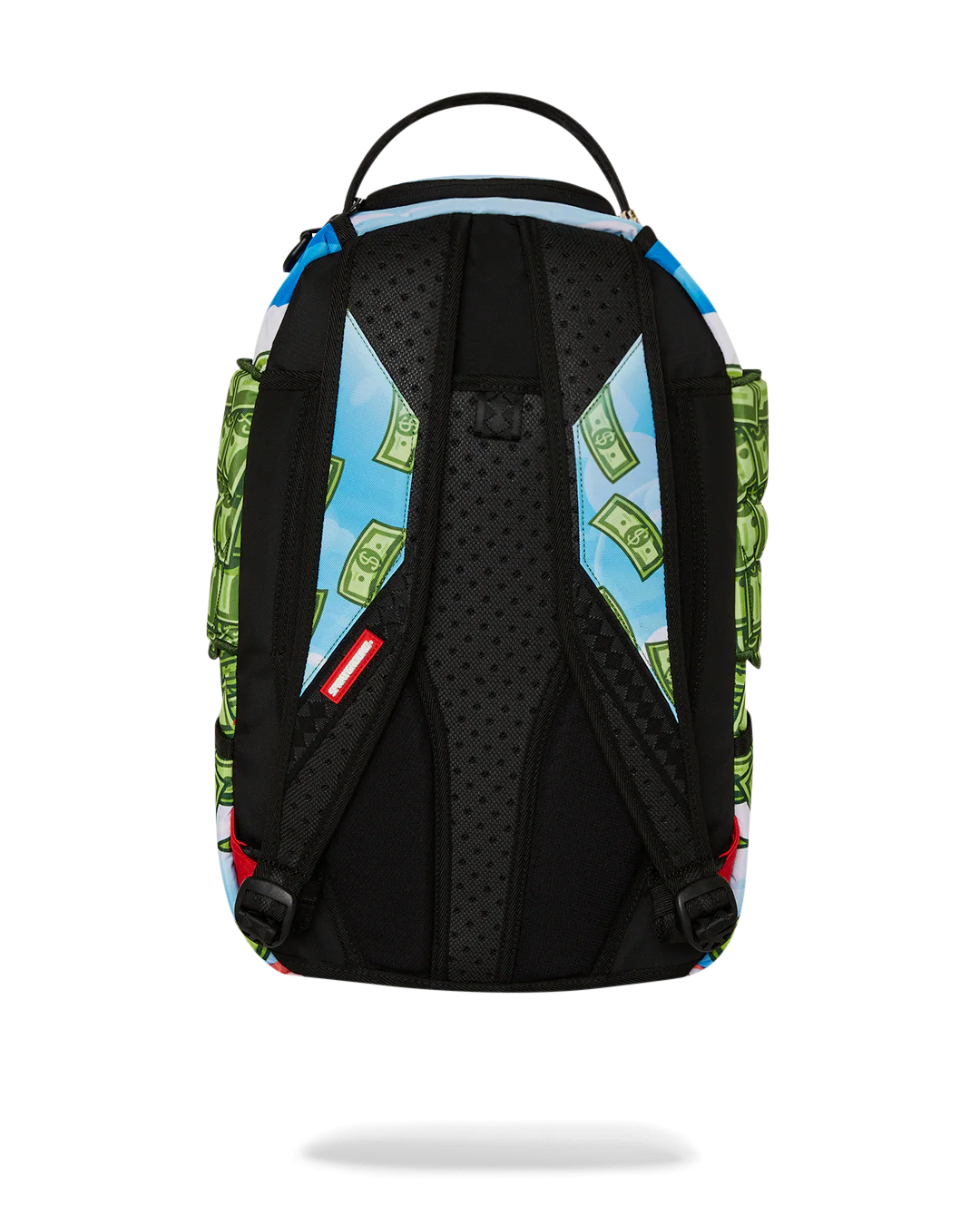 Dimensions: 18″ x 6″ x 11.5″ • Front zipper pocket • Side pockets • Zippered Stash pocket • Separate velour sunglass compartment • Ergonomic mesh back padding • Adjustable Straps for custom sizing • Gold zippers with metal hardware • Metal “Sprayground Authentic” badge • Slide through back sleeve connects to carry-on luggage to free your hands
